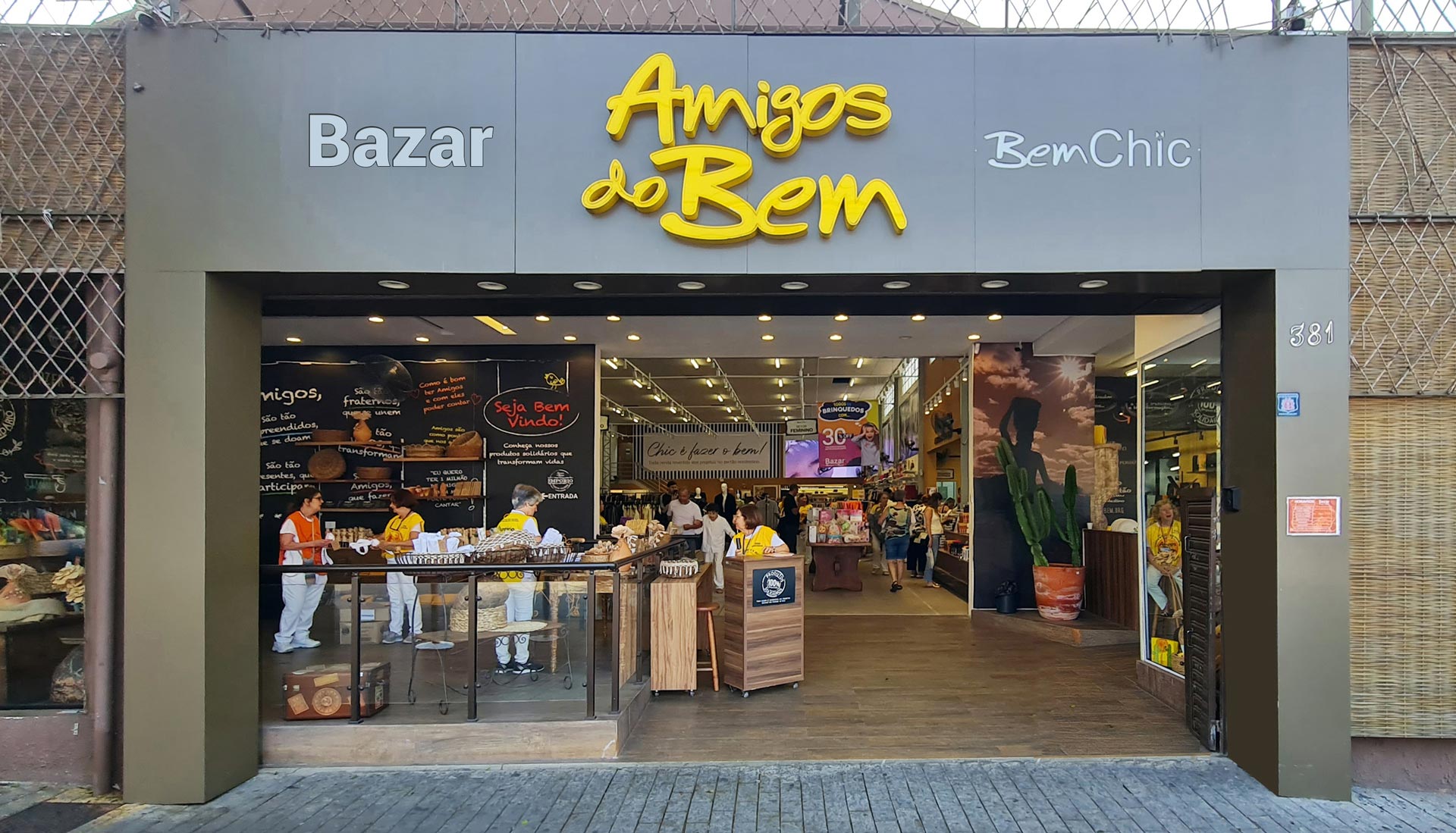As portas do Bazar Amigos do Bem e Bazar Bem Chic, que já existem há mais de 10 anos, estão abertas em um novo espaço, confortável, amplo, acessível e moderno. Aqui você encontra produtos de cama, mesa e banho, calçados, roupas, presentes, brinquedos e acessórios infantis, bijuterias e utilidades domésticas, novos e usados, com descontos de até 70%. São mais de 30 mil itens com preços a partir de R$ 1,90.