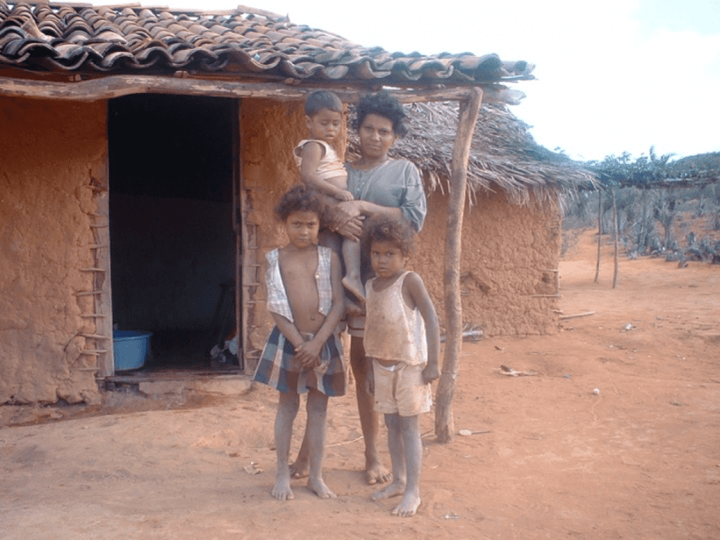 Isoladas do resto do Brasil, encontramos famílias em povoados distantes, morando em casas de taipa, dormindo no chão de terra batida, sem água ou alimento, desnutridos e desorientados pela fome e pela seca.