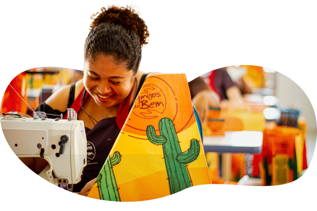 Criamos um modelo próprio de Desenvolvimento Social Sustentável, que promove emprego, renda e dignidade para centenas de famílias atendidas pelos Amigos do Bem. Nossos Produtos do Bem garantem autonomia financeira e têm 100% da renda revertida para nossos projetos de educação, ajudando a romper o ciclo da miséria e construindo um futuro com mais oportunidades.